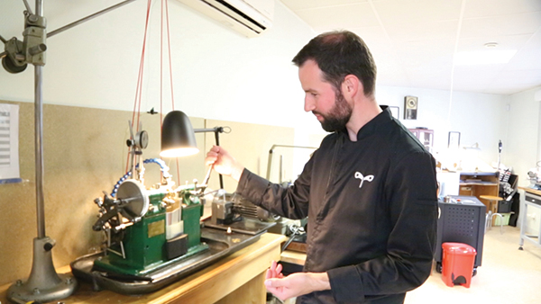 “Aujourd’hui, l’horlogerie traditionnelle et la mécanique d’art, c’est quelque chose qui est en danger », fait remarquer John-Mikaël Flaux. « Rares sont ceux qui ont la capacité de maîtriser tout le processus, de l’idée, du petit croquis à la pièce terminée, en passant par la conception et la fabrication.” D’où l’intérêt d’aller chercher conseil auprès des anciens ! Dans les livres, John-Mikaël Flaux vient glaner “des astuces, des façons de faire, de penser. J’aime bien me mettre dans l’état d’esprit des anciens. On a perdu beaucoup de choses, on risque d’en perdre encore plus s’il n’y a pas d’actions qui sont faites.” L’horloger évoque aussi le rapport aux outils qui a changé. « Il y avait énormément de soin apporté aux finitions, aux formes, aux petits détails parce qu’il y avait un vrai respect de la matière, du temps passé, même si c’était purement fonctionnel.” Sa présence aux 24h du Temps en juin dernier lui a permis de présenter son travail au grand public.