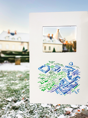 Ces sept haltes (plus un point hors parcours avec la maison d’enfance) sont également l’occasion de découvrir ou redécouvrir quelques lieux emblématiques. Parmi ceux-ci, l’incontournable château de la Verrerie et la « lumière verte » de son parc, l’Hôtel de ville ou encore la médiathèque. Cette dernière devrait proposer l’an prochain de l’accompagnement de classes sur ce parcours. Un espace Christian Bobin, consacré à l’écrivain, est également aménagé dans ses murs. L’auteur demeure aujourd’hui encore très lu, premier poète en termes de ventes chez Gallimard. Ce parcours, à l’image de l’écrivain marcheur, est aussi une invitation à prendre son temps. « La lenteur, c’est l’espace que l’on ouvre à la beauté », écrivait Christian Bobin dans La Grande Vie (Gallimard, 2014). Face à la frénésie moderne, il invitait à ralentir la cadence pour parvenir à une forme de contemplation. Ces fragments de poésie, à attraper au vol dans la ville, les visiteurs sont aussi incités à se les approprier, noter leurs impressions dans un carnet, un dessin, une sensation… Et si les mots seront bien sûr rois tout au long de ce parcours, la dimension visuelle ne sera pas oubliée avec une scénographie signée Colin Gravot. On retrouvera dans ses illustrations le vert de la nature, l’ocre industriel et enfin le bleu, comme un trait d’union entre ces deux univers, couleur symbolisant l’imaginaire de l’écrivain, son monde poétique.