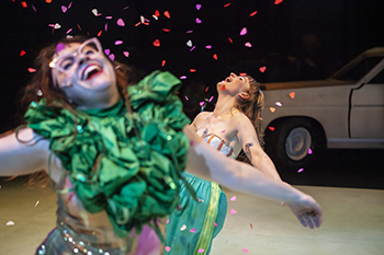 “Le Grand Divertissement Royal de la Clinic Orgasm Society” se réclame en particulier de l’esprit subversif et du flegme tout britannique des Monty Python, où là encore la cruauté affleurait très souvent derrière l’humour anglais (et absurde !). “Sous la nappe de la comédie grinçante et la finesse du langage se tapit une sauvagerie innocente qui donne à l’humour de la pièce une férocité unique”, explique le collectif. George de Molière se déroule à un rythme endiablé, et “l’univers sonore, musical et visuel devient de plus en plus hallucinatoire et psychédélique.” Le collectif reprend également la pastorale de 1668 (intermèdes de chants, musique et danses qui, sous couvert de divertissement, ne sont pas dénués là encore de critique sociale). La musique de Lully est abandonnée ici au profit d’ambiances de carnavals. “Il s’agit surtout de pouvoir jouer avec le contraste de deux mouvements antagonistes — d’une part la fête qui vibrionne avec une joie implacable, d’autre part la chute trois fois répétée de George Dandin”. La Clinic Orgasm Society nous entraînera donc dans un tourbillon de musiques, de mots et de sons !